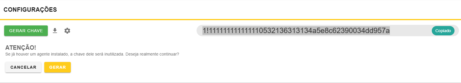 Gerar Chaveno agente. O Collect exibirá uma mensagem de atenção, clique emGerarpara confirmar. A chave, após gerada será exibida ao lado. Clique em cima para copiar.