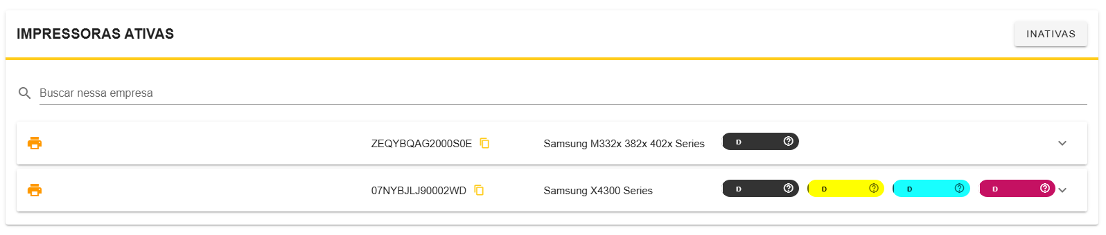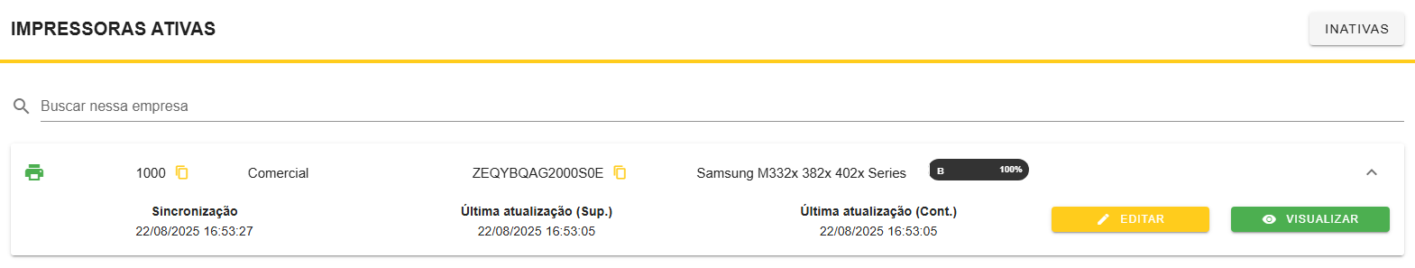 No portal verifique as impressoras sincronizadas e ative as que irão ser monitoradas