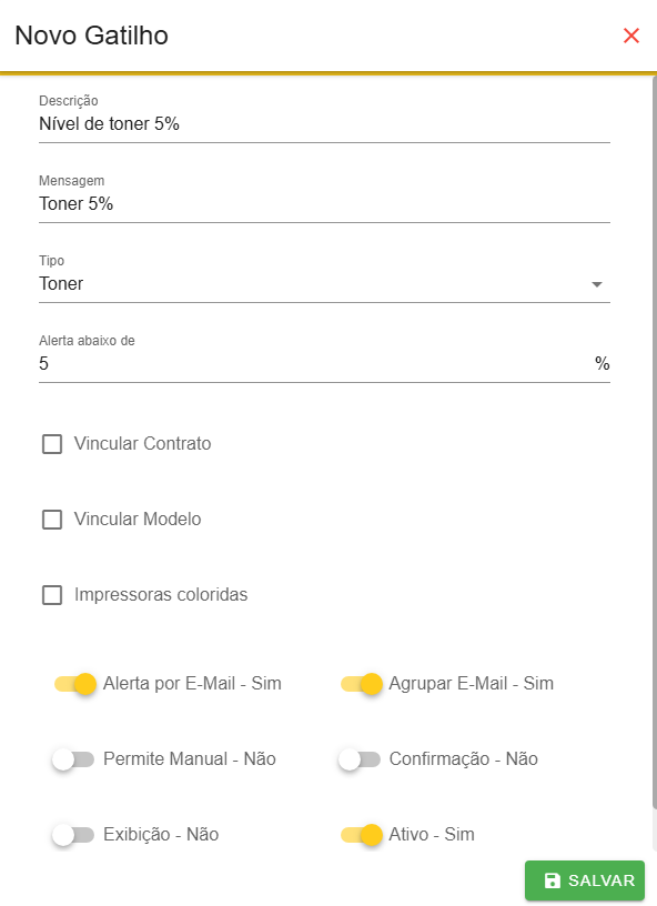 Clique em salvar. O gatilho está configurado
