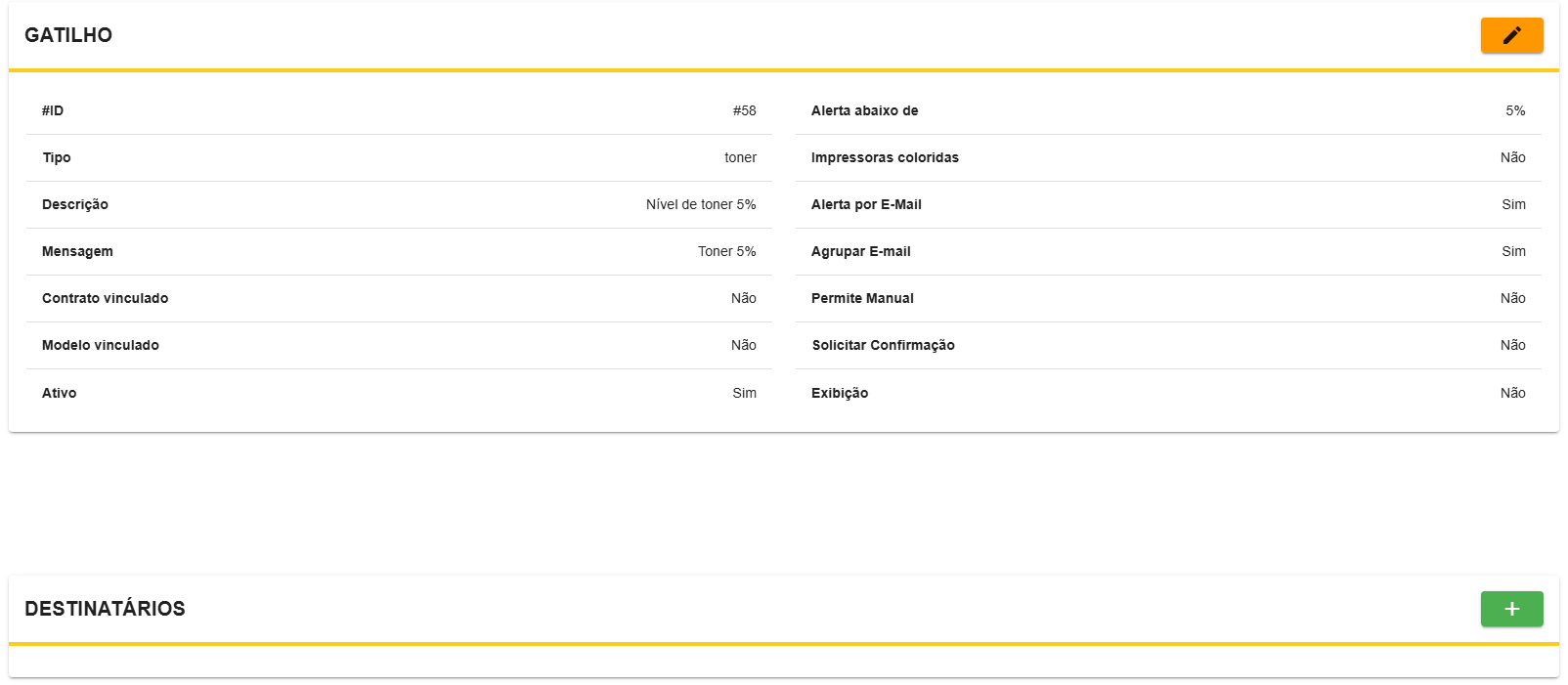 Notificações >> Gatilhos