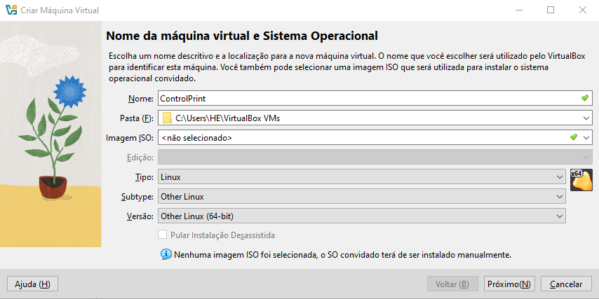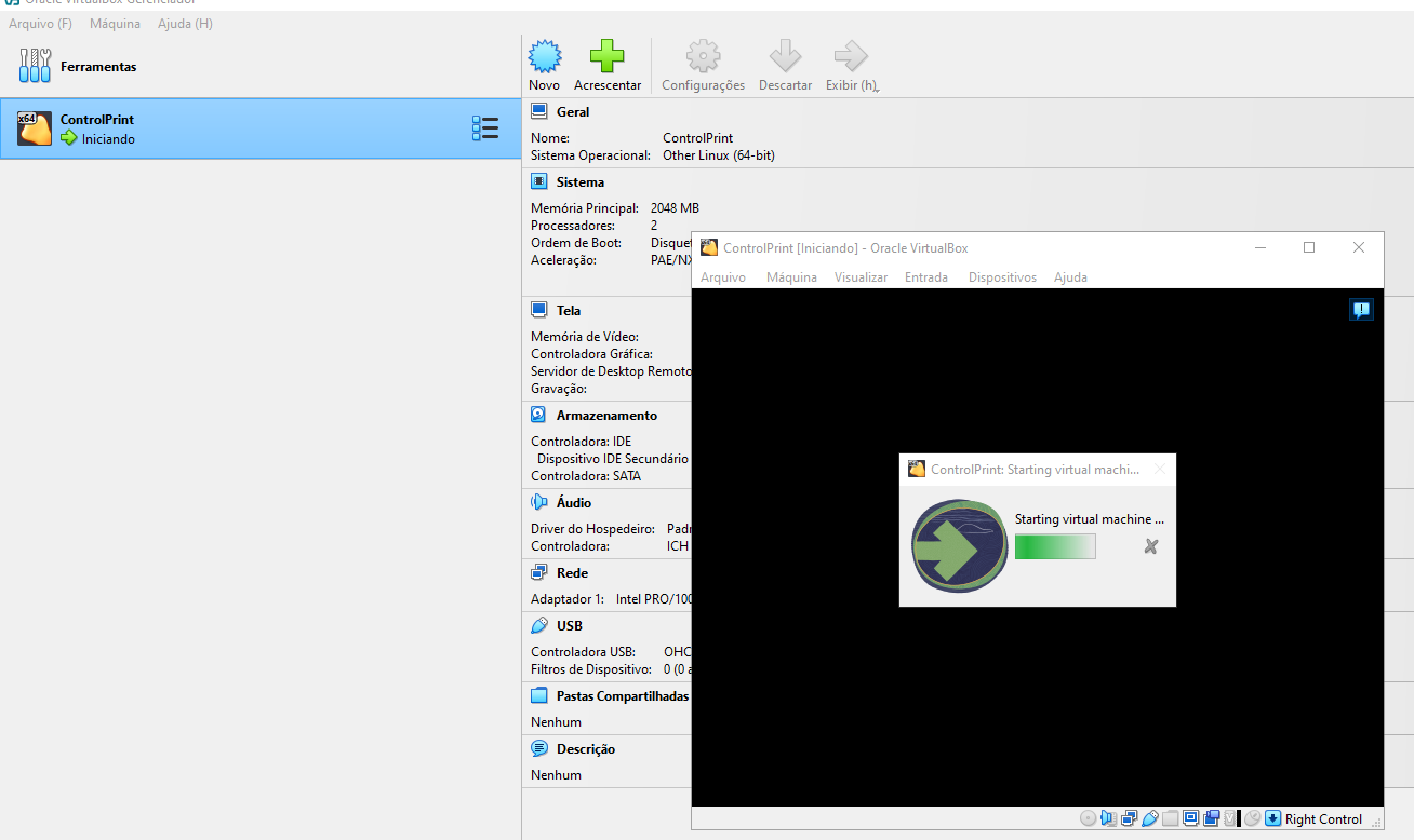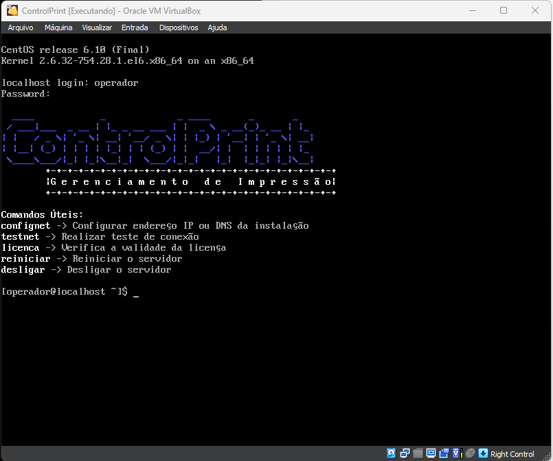 O servidor de impressão ControlPrint Premium+, é uma distribuição Linux personalizada, baseada em CentOS. Sua instalação é feita através da criação de uma máquina virtual a partir de um disco existente, onde é selecionado a imagem baixada previamente.