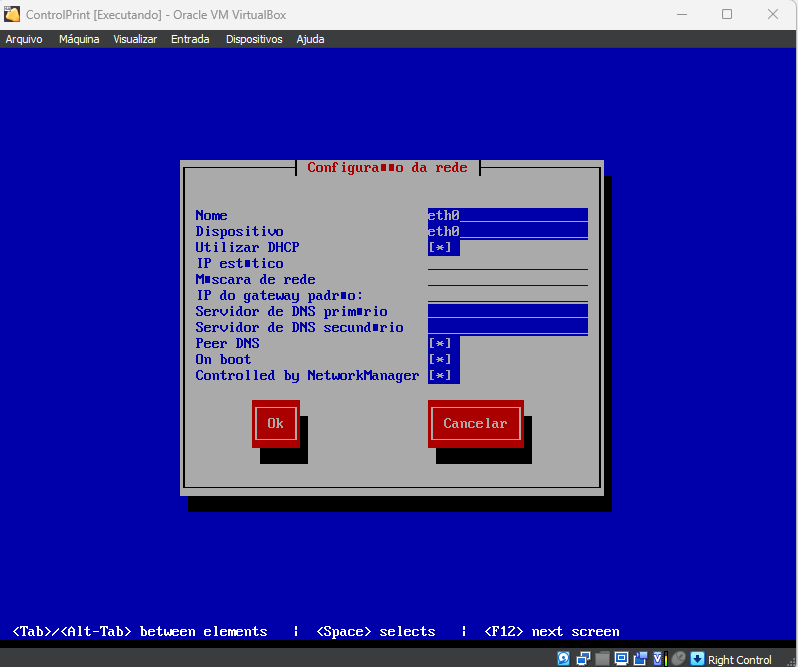 - Pressione ENTER para avançar para a configuração da interface eth0.