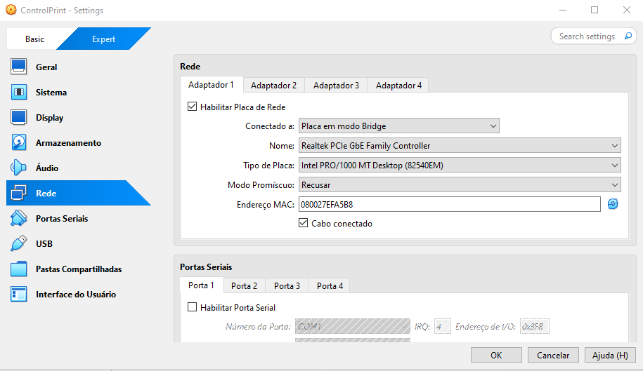 Placa em modo Bridge. - Nome: (Escolha conforme sua placa de rede, caso haja mais de uma)