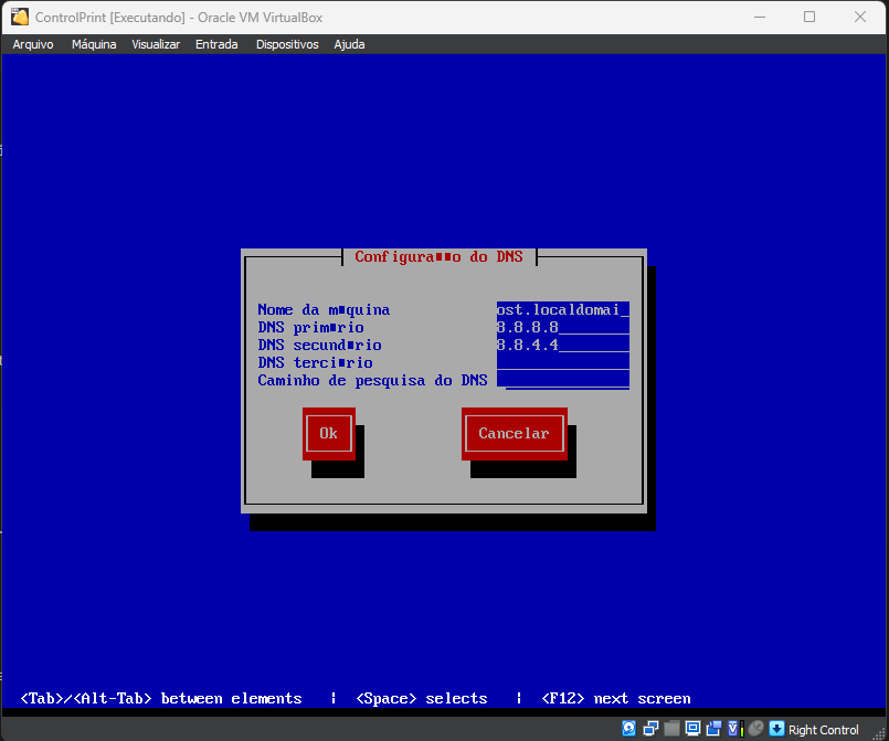 configuração do DNSe insira as configurações do DNS da sua rede. - Ao finalizar, pressione ENTER em