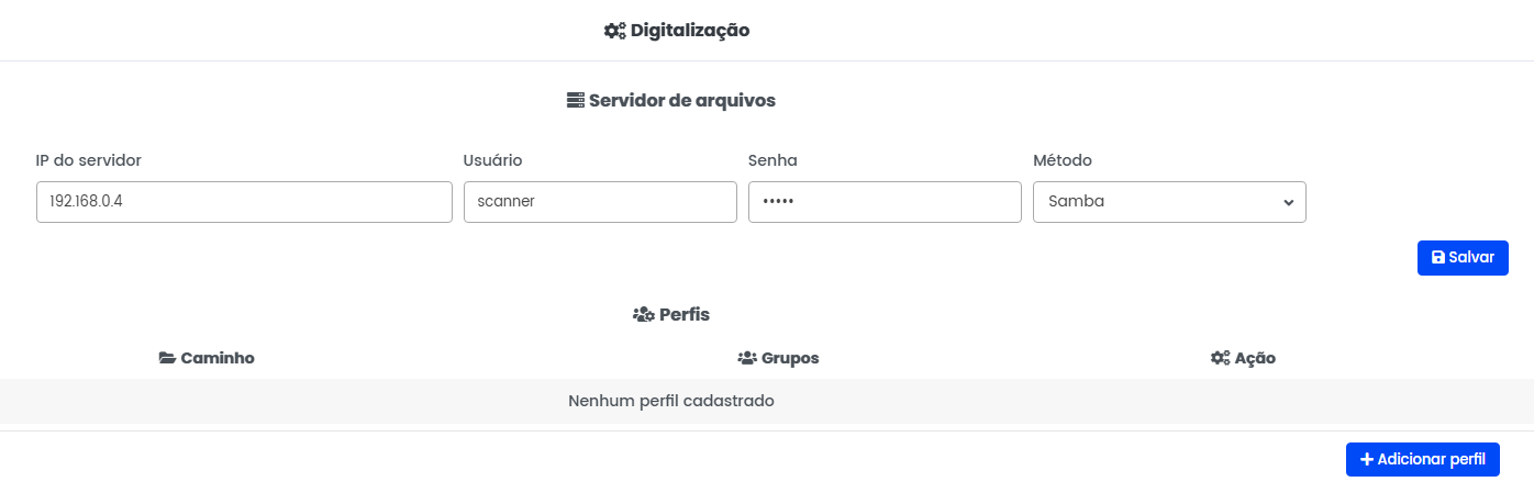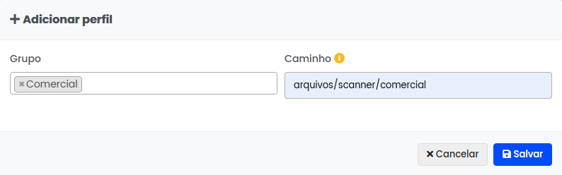Adicione o perfil com o grupo e caminho da pasta dos scanners