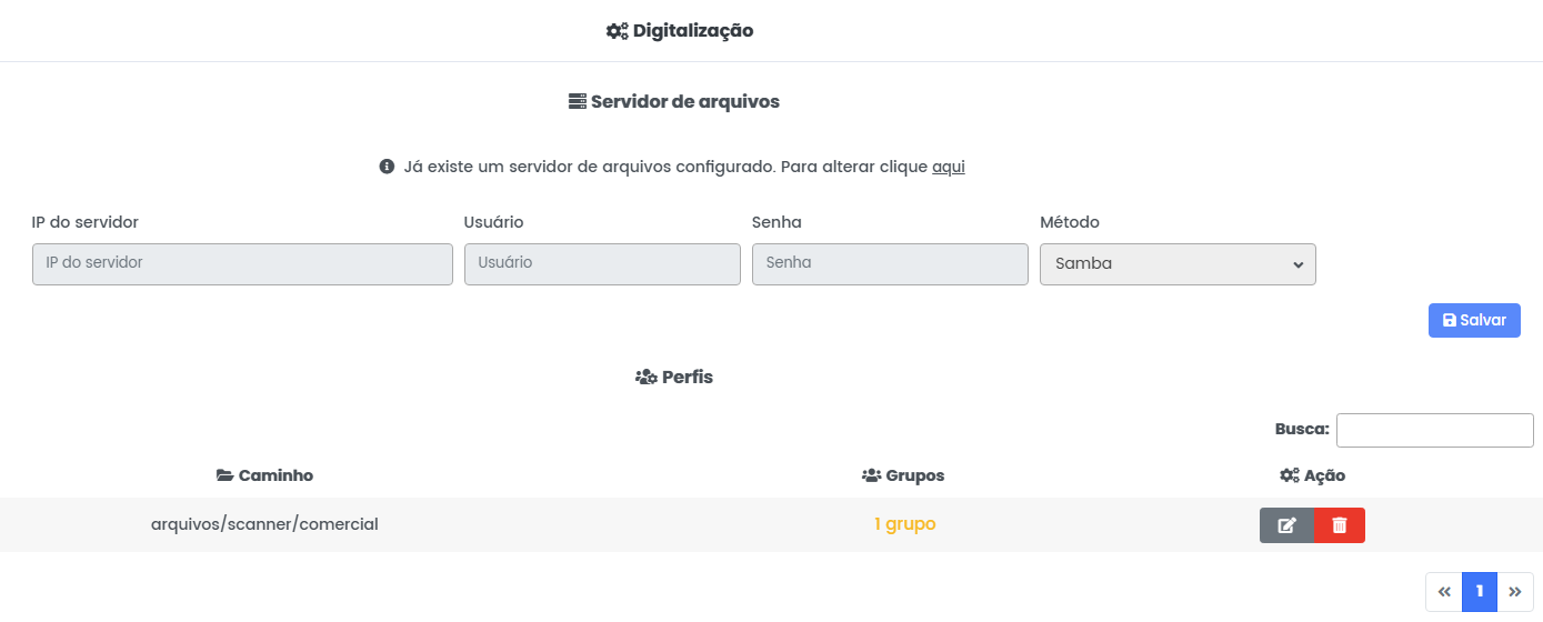 Preencha os dados necessários para autenticação no servidor de arquivos. IP do servidor Usuário Senha e clique em Salvar