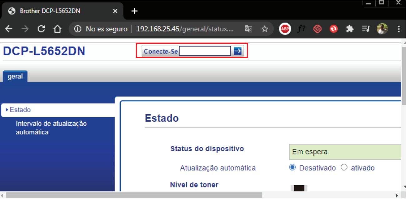 URLdigite a rota de login do servidor da solução http://IP:90/secure e clique em Enviar.
