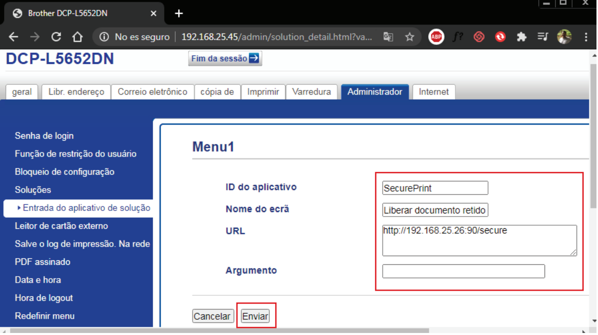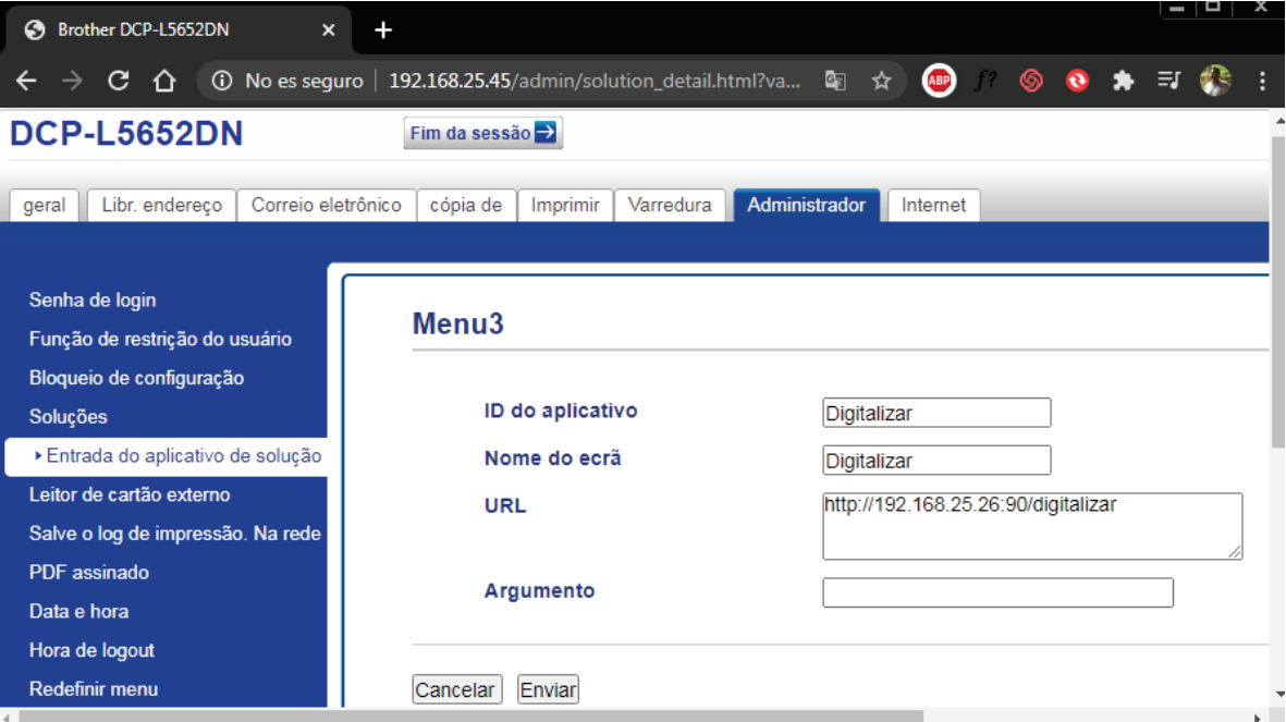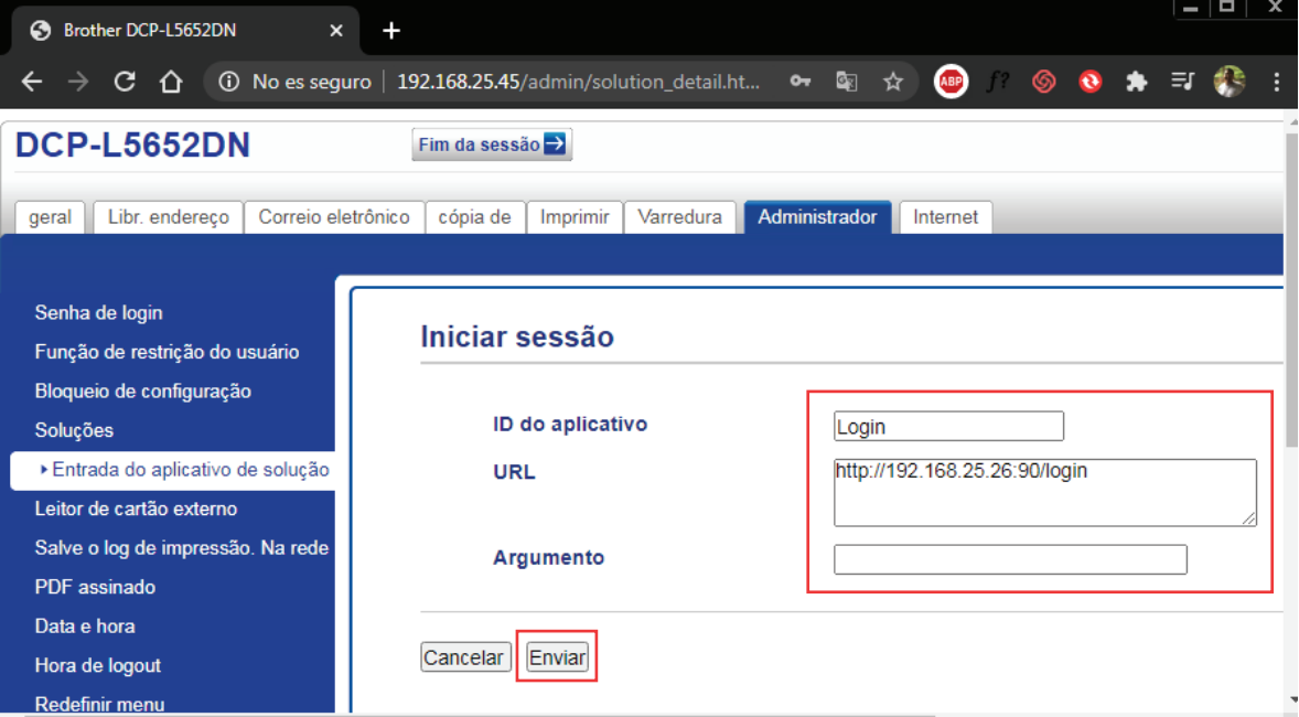 URLdigite a rota de login do servidor da solução http://IP:90/digitalizar e clique em Enviar.