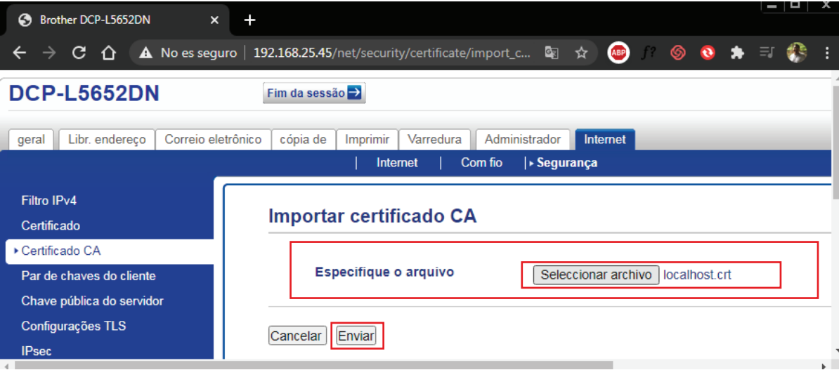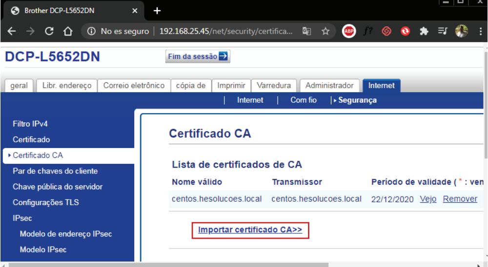 Importe o certificado do ControlPrint disponível em /etc/pki/tls/certs/localhost.crt ou faça download através do link: https://www.hesolucoes.com.br/arquivos/CA.rar
