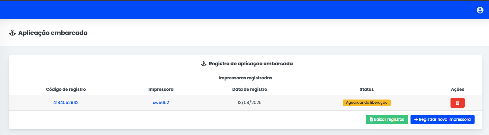 - Ao clicar no código de registro a solução será confirmada no servidor