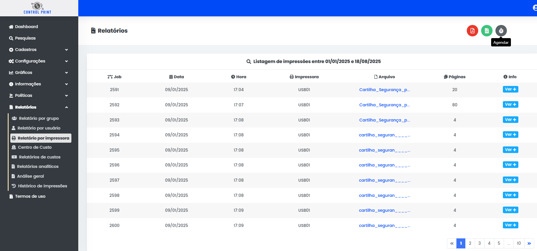 No ControlPrint gere o relatório que deseja agendar e clique na opção de