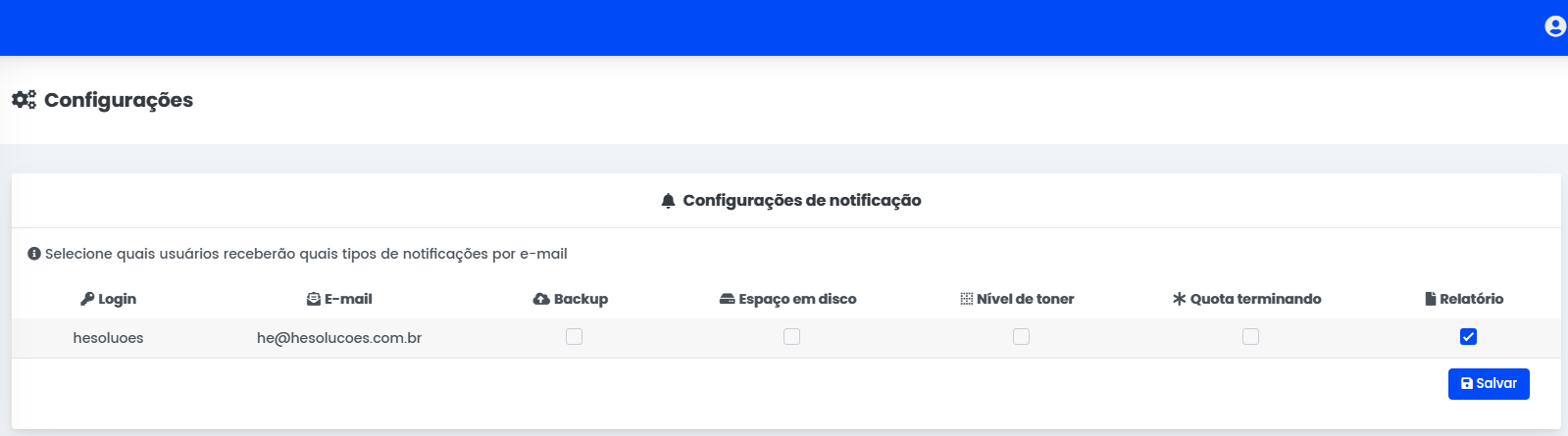 Caso não apareça usuários verifique se o usuário está permitido a notificação de relatório