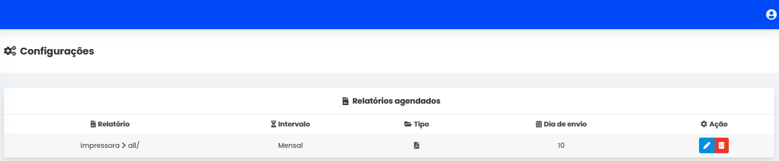 Acesse Configurações >> Agendamento >> Relatório para editar um relatório