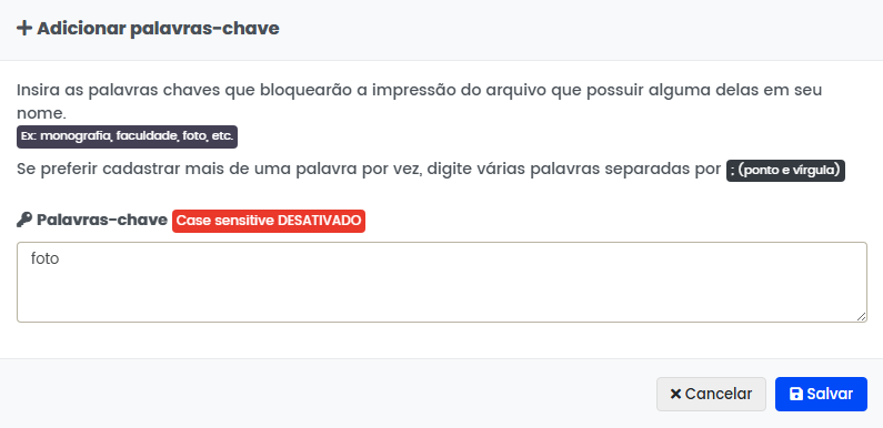 Adicionar palavras-chavee adicione a palavra que deseja bloquear nas impressões