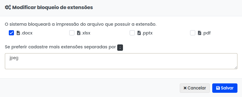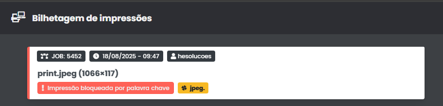 Guia de como configurar bloqueio de impressão por palavra chave e extensão de arquivo.