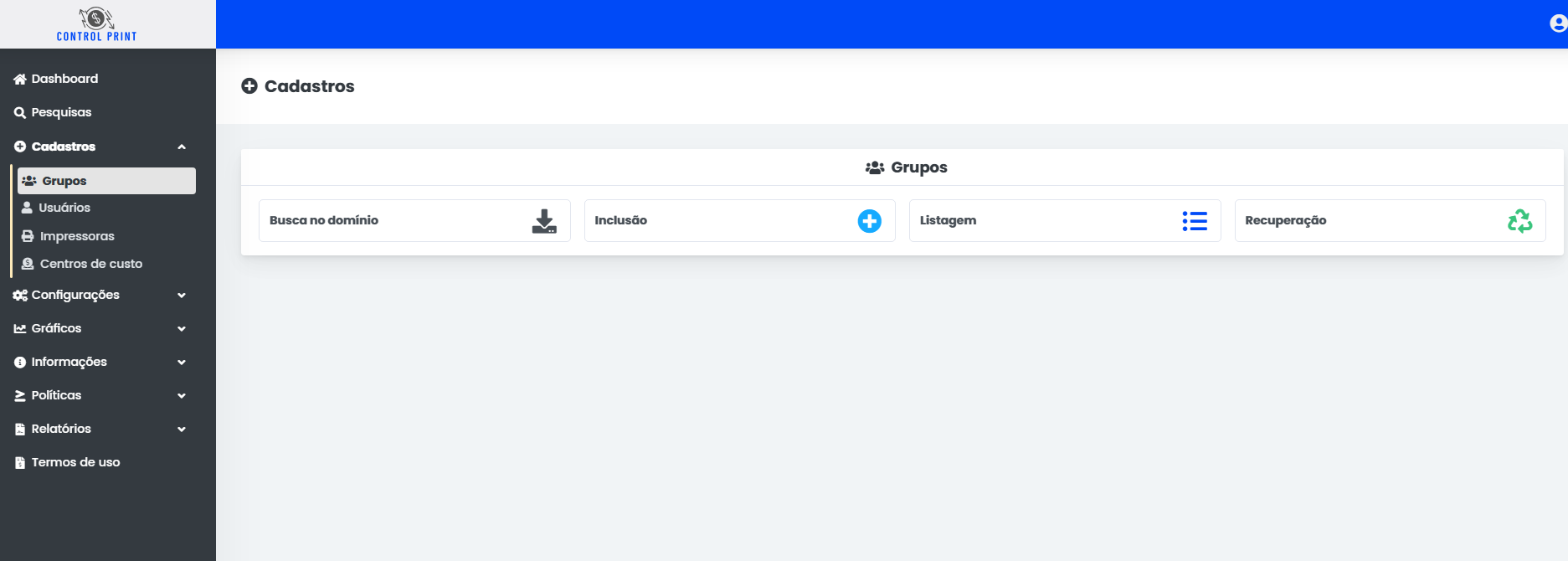 - No ControlPrint navegue pelo menu Cadastros >> Grupos