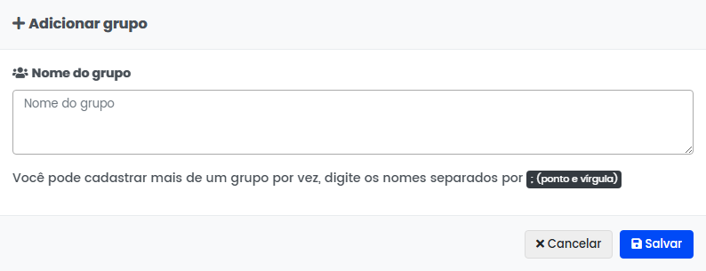 - Clique no botão Inclusão para adicionar um grupo manualmente