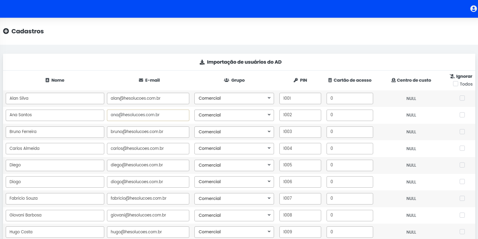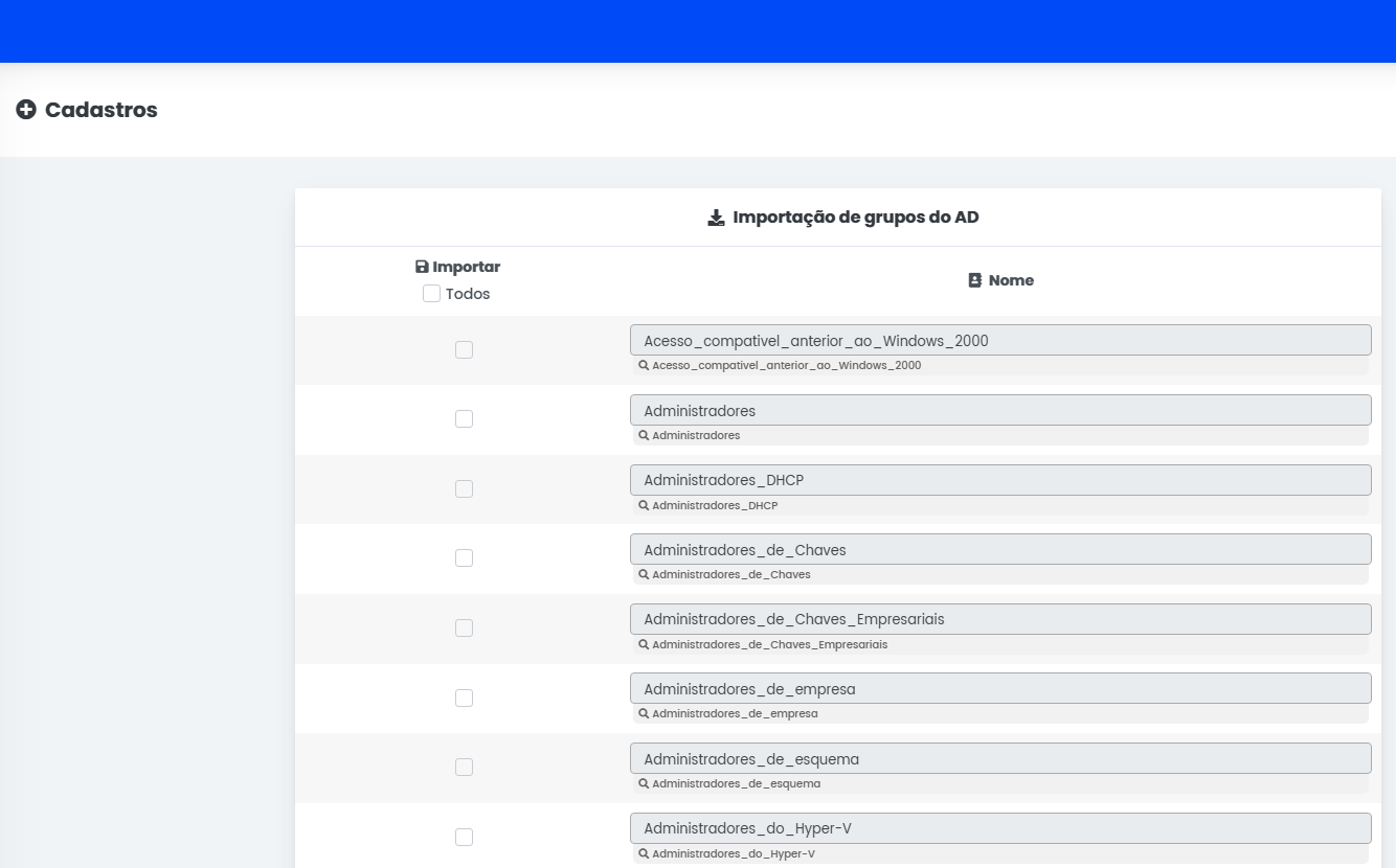 - Clique no botão Importação para importar usuários do AD/ LDAP