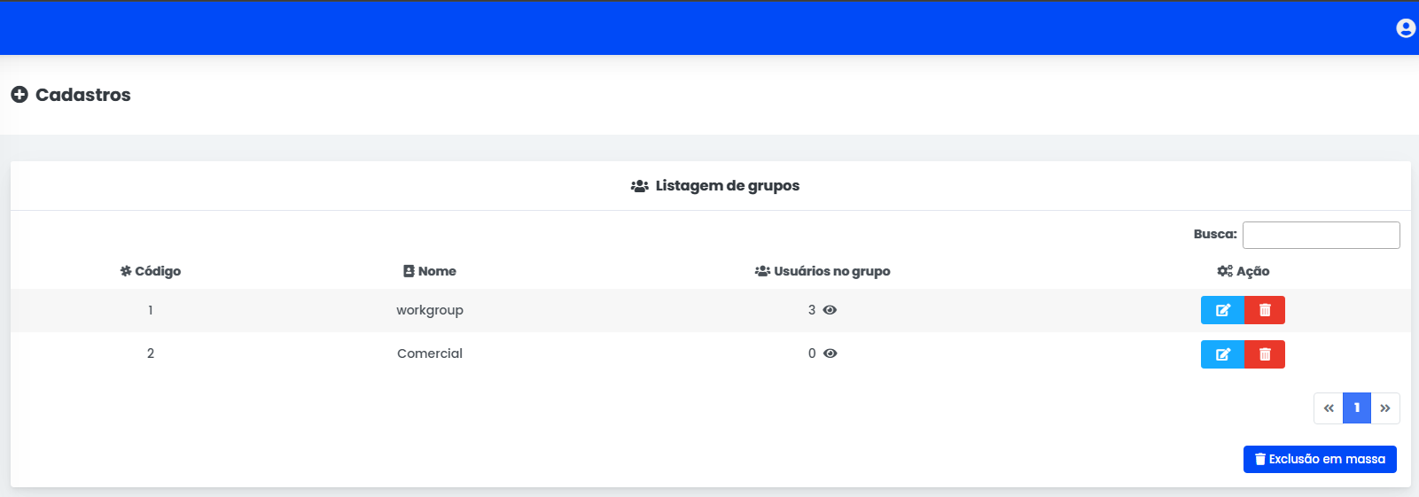 - Clique em Listagem para verificar, editar ou excluir os grupos existente