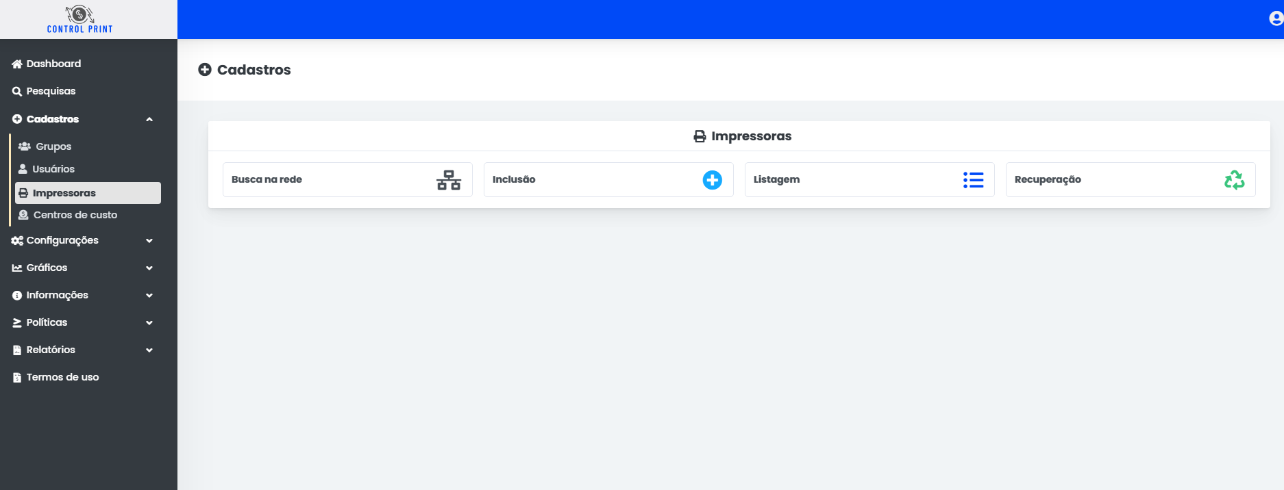 No ControlPrint navegue pelo menu Cadastros >> Impressoras