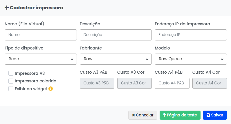 Nome (Fila Virtual): nome da fila virtual utilizado na configuração no computador