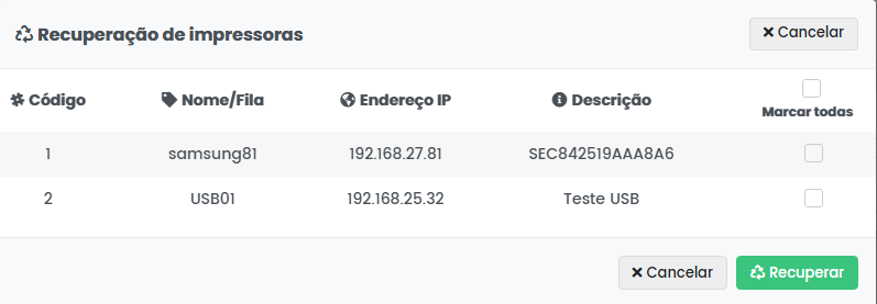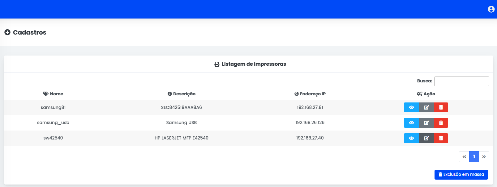 Clique em Listagem para verificar, editar ou excluir as impressoras existente