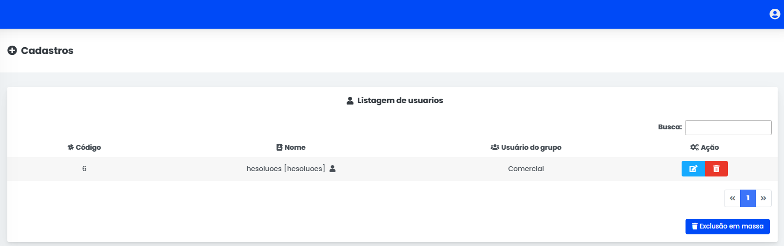 Clique em Listagem para verificar, editar ou excluir os usuários existente