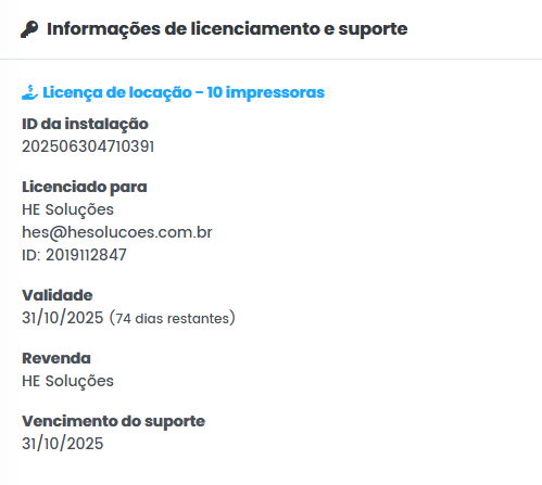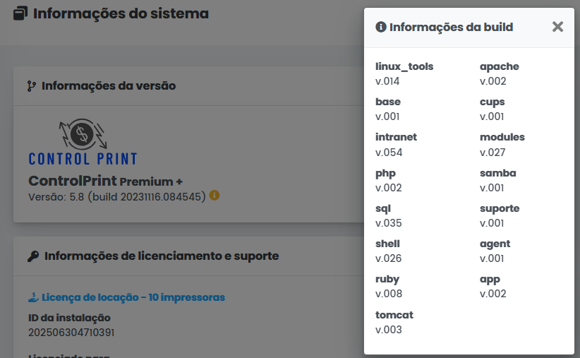 No ControlPrint navegue pelo menu Informações >> Sistema e backup